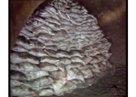 按推薦比例配成的混合料在800-1000℃高溫下,15-20分鐘內(nèi)不會被引燃形成明火,且不會產(chǎn)生有毒有害氣體,并有極強(qiáng)的隔熱功效。按比例將干碎煤矸與FSA料干混均勻后,用噴霧加水或噴水的方式使其形成均勻有粘彈性的混合料再裝袋壘砌成墻,此粘彈性的混合料一直呈濕潤保水狀態(tài),阻燃隔熱能力強(qiáng)。每個(gè)袋中20kg碎煤(或矸石與碎煤混合)+2-3kgFSA料+10-15kg水;封堵溜煤眼、小井時(shí)不裝袋效果更好。