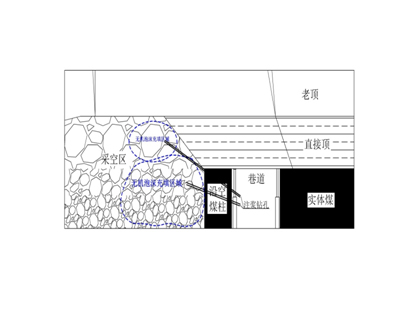 (2) 在工作面架間和架后采取大管徑、長鉆孔的方式壓注充填材料,封堵松散煤體和架后空洞裂隙,可直接滅火并封堵裂隙、隔離火源隱患點。